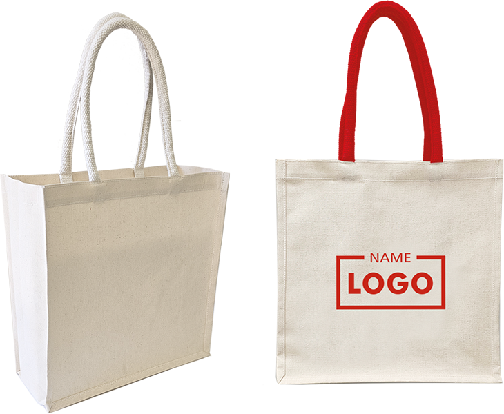 Diese hochwertige und standsichere Einkaufstasche ist aus festem Canvasstoff gefertigt. Sie verfügt über runde, rote Baumwollhenkel zum Umhängen. Sie ist innen laminiert, um sie vor Feuchtigkeit zu schützen und um ihr mehr Stabilität zu verleihen. Durch die roten Baumwollhenkel ist sie ein echter Hingucker. Sie ist ein nachhaltiges und langlebiges Produkt und eine gute Alternative zu gewöhnlichen Baumwoll-Werbetaschen.